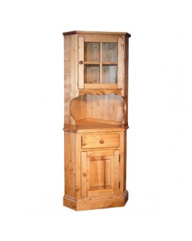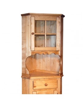 Meuble d'angle complet haut vitré + niche, bas 1 porte 1 tiroir en épicéa 100% massif