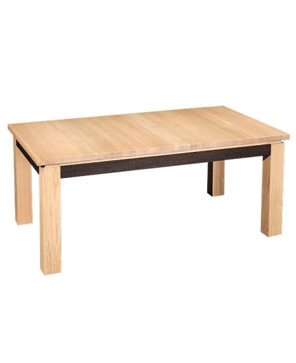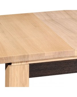 Table rectangulaire en chêne 100% massif avec ouverture synchronisée et 2 allonges de 50 cm