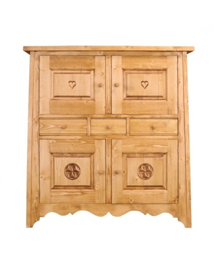 Meuble Vaisselier complet Bas + haut largeur 115cm Epicéa 100% massif Sculptures rosace et coeur Une forme originale en "trapèze"