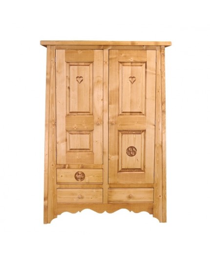 Meuble Vaisselier complet Bas + haut largeur 115cm Epicéa 100% massif Sculptures rosace et coeur Une forme originale en "trapèze"