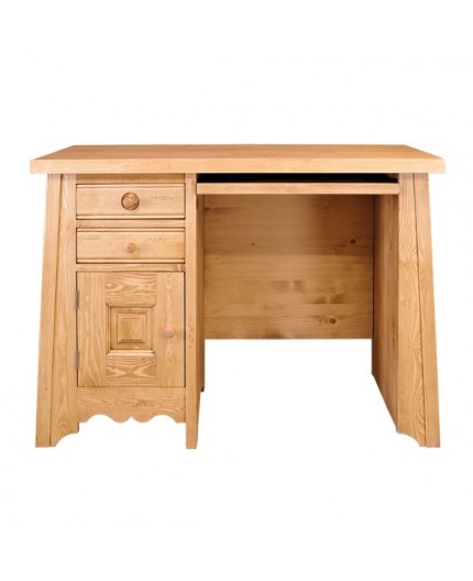 Bureau en épicéa 100% massif avec rosace sculptée et une tablette clavier coulissante
