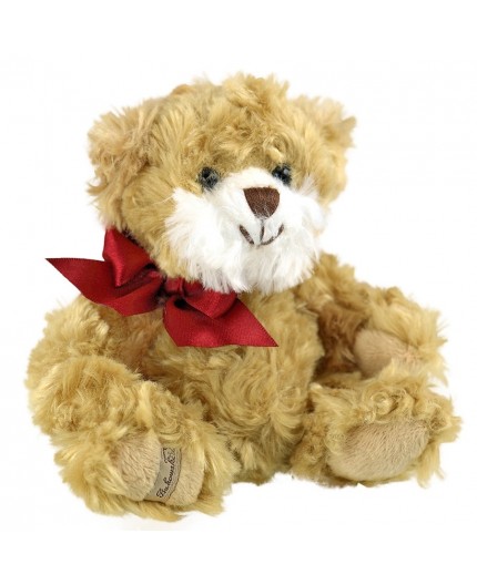 Mini ours blond habillé d'un nœud satin rouge