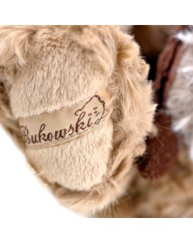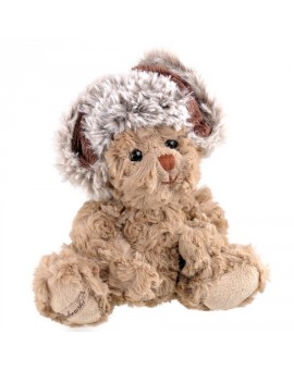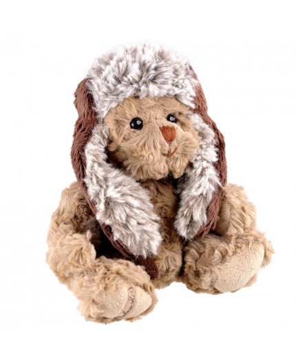 Mini ours brun habillé d'une chapka brune foncée et grise